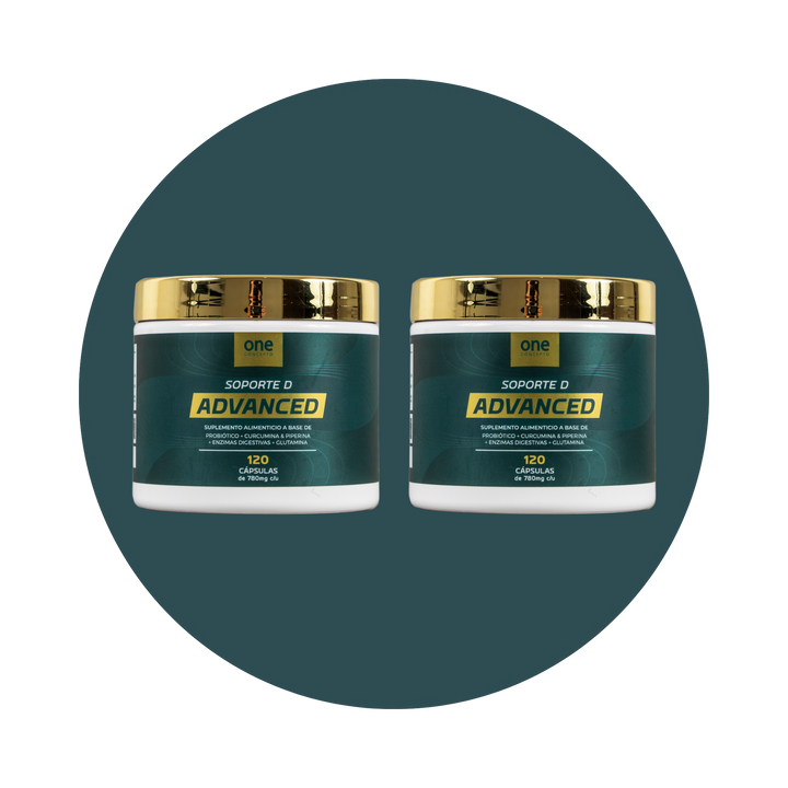 Dos piezas de Soporte D Advanced, que apoya la integridad digestiva y es útil en personas con Síndrome de Intestino Irritable (SII). Combinación de glutamina, probióticos, extracto de cúrcuma y enzimas que favorecen la reparación de la mucosa intestinal, la reducción de inflamación y el equilibrio de la microbiota.