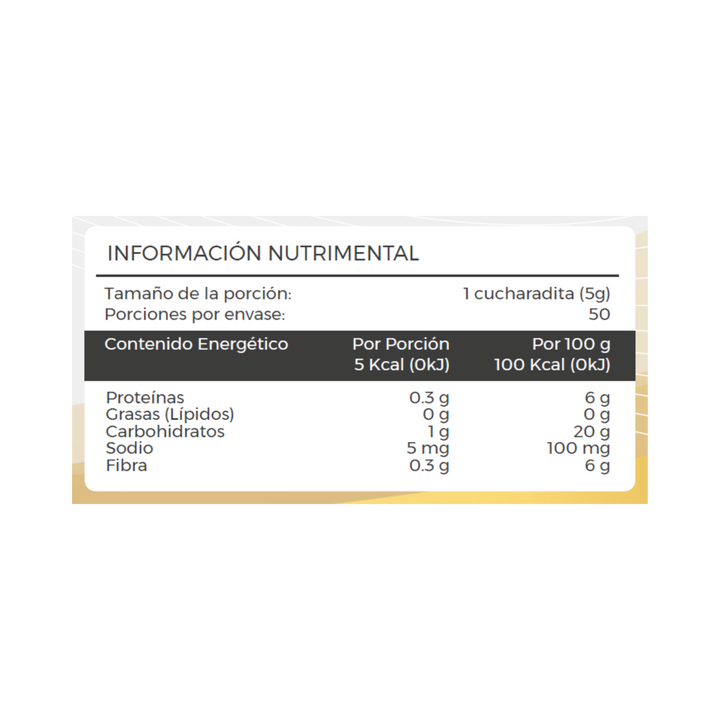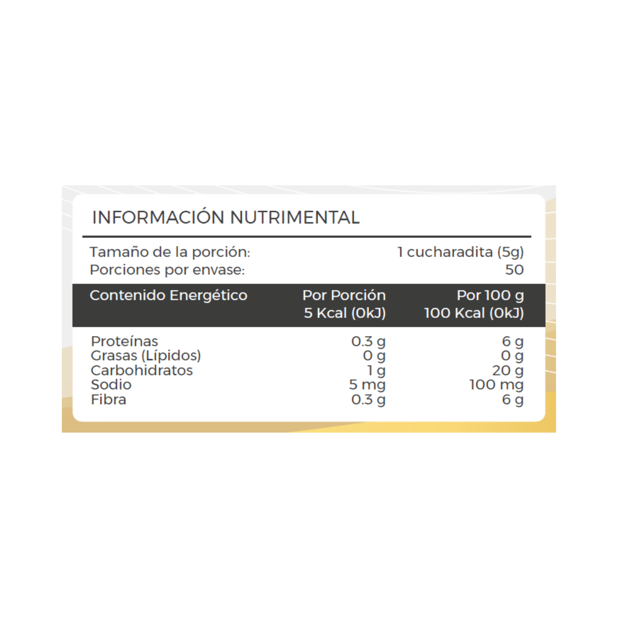 Disolver la puntita de una cucharadita cafetera en agua caliente, leche vegetal o bebida sin azúcar.