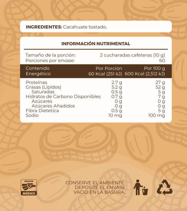 One Natural: 100 % cacahuate tostado, sin añadidos.
